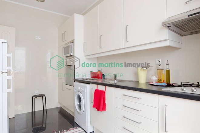 Cozinha(13m2): Chão mosaico, móveis cremes, cuba inox, equipada com exaustor, placa, forno, microondas, frigorífico, máquina de lavar roupa, despenseiro, varanda1(preparada para colocar uma máquina).