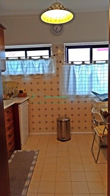 Cozinha (9m2): Chão de mosaico , moveis de madeira, tampo de mármore, com placa a gás , forno encanastrado, lavatório de duas cubas em inox.