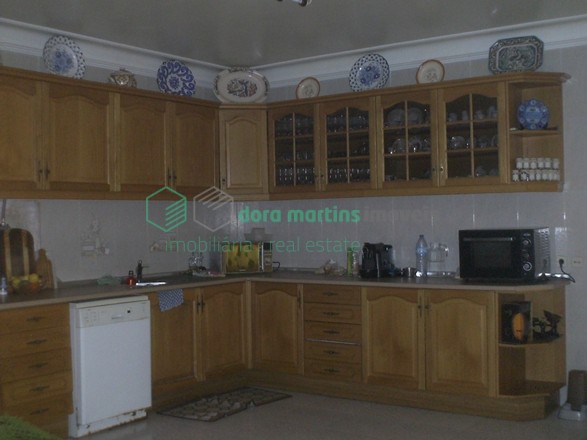 Cozinha: Chão mosaico, móveis madeira, equipada com placa, forno, ventax, despensa com 18 m2
